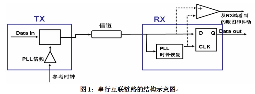 從整個鏈路的組成來看,發(fā)送器參考時鐘的抖動在串并轉(zhuǎn)換時就引入到整個鏈路中,影響著TX端發(fā)送出的數(shù)據(jù)的抖動,而接收器要從這些數(shù)據(jù)中恢復出時鐘來進行后續(xù)的處理??梢钥闯霭l(fā)送器參考時鐘的性能對整個鏈路的性能起到很關(guān)鍵的作用。本文從時鐘抖動的相關(guān)概念、測試實例、測試注意事項、測試難點幾方面對時鐘抖動測試進行分析和探討。