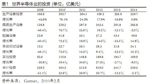 近期半導體業(yè)的迅猛增長,推動了半導體生產(chǎn)設備市場的快速復蘇,存儲器、代工業(yè)的發(fā)展以及進一步走向微細化先進技術的要求,則是主要的拉動力量。在各項生產(chǎn)設備中晶圓生產(chǎn)線(wafer fab)設備最為重要,增長也最快,2010年將竄升76.7%,達229億美元,獨占半導體生產(chǎn)設備的78%,整個半導體業(yè)投資的近57%。組裝設備增長75.5%,達41.8億美元,自動測試設備增長72%,達22.7億美元。其他有關投資增長19.4%,達110.6億美元,整個半導體業(yè)投資共增長55.9%,達到404.3億美元(表l)。