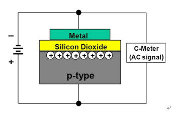 圖1.P型襯底上形成的MOSCAP結(jié)構(gòu)的C-V測量電路