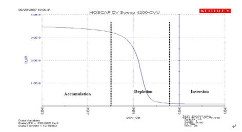 圖2.C-V測試中獲得的MOSCAP結(jié)構(gòu)的直流偏壓掃描