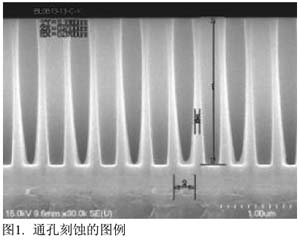 隨著半導(dǎo)體制造技術(shù)推進(jìn)到更加先進(jìn)的深亞微米技術(shù),半導(dǎo)體金屬布線的層數(shù)越來(lái)越多,相應(yīng)的通孔刻蝕工藝也越多,并且伴隨著通孔的尺寸隨著器件設(shè)計(jì)尺寸逐步縮小。以DRAM制造為例,存儲(chǔ)量由4M發(fā)展到512M時(shí),設(shè)計(jì)規(guī)則由1μm縮小到0.16μm,其中通孔的尺寸也從0.8μm下降到了0.25μm。通孔尺寸越小,刻蝕的難度也越來(lái)越大,如果刻蝕不到位,就可能出現(xiàn)金屬布線間的開(kāi)路,直接導(dǎo)致器件失效。