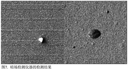 由于暗場(chǎng)檢測(cè)儀器的接受的更多的信號(hào)源都是有一定角度的,所以這種檢測(cè)設(shè)備會(huì)對(duì)晶圓的表面更敏感。所以在對(duì)通孔刻蝕后晶圓進(jìn)行檢測(cè)結(jié)果來(lái)看,能抓到更多的是表面的微粒以及通孔刻蝕過(guò)程中的聚合物殘留。所以暗場(chǎng)檢測(cè)儀器在對(duì)通孔刻蝕檢測(cè)結(jié)果不盡如人意,它只能對(duì)通孔刻蝕過(guò)程后芯片表面的殘留進(jìn)行有效的檢測(cè),可是對(duì)于通孔刻蝕狀態(tài)沒(méi)法完全反映(如圖7所示)。