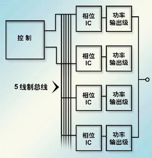 一種更有吸引力的方案是將以前分別由控制器和驅(qū)動器IC完成的功能在芯片內(nèi)重新劃分。對控制器來說,諸如可編程電壓鑒別電路、一個PWM斜坡振蕩器、一個誤差信號放大器、偏置電壓和檢錯等功能在一個多相設計中僅出現(xiàn)一次。驅(qū)動IC現(xiàn)在變成一個相位IC,管理該設計每一相位中所有要重復的功能。這些功能包括電流分配、PWM、相位時序、電流感應和雙門驅(qū)動器。控制與相位IC之間的通訊由一種5線制模擬總線來完成,分別傳遞以下一些信息:偏置電壓、相位時序、電流感應/分配、PWM控制和參考調(diào)節(jié)電壓。