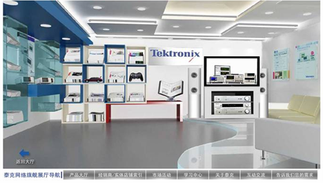 網(wǎng)上展廳是一種全新的以網(wǎng)絡(luò)為依托的互動(dòng)營銷平臺(tái),整合了文字、圖片、音頻、視頻和網(wǎng)絡(luò)等技術(shù),同時(shí)3D立體畫面可讓受眾如身臨其境,可直觀地感受產(chǎn)品和品牌本身。泰克公司秉承“服務(wù)創(chuàng)新永無止境”的理念,希望借助這種新型的互動(dòng)虛擬營銷平臺(tái),結(jié)合遍布全國的零售實(shí)體店,通過“虛實(shí)”結(jié)合的全新營銷服務(wù)模式為中國工程師帶來顛覆式的絕佳采購體驗(yàn),并實(shí)現(xiàn)泰克品牌的展示。將現(xiàn)實(shí)中的公司產(chǎn)品展示廳搬到網(wǎng)站上并非泰克公司首創(chuàng),但在國際國內(nèi)同行中無疑是第一個(gè)“吃螃蟹”的人。