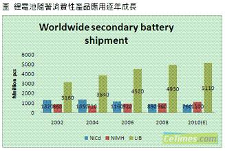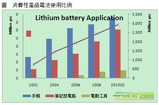 消費性產(chǎn)品的發(fā)展趨勢迅速牽動電池產(chǎn)業(yè),根據(jù)集邦科技(TrendForce)旗下研究部門EnergyTrend表示,鋰電池隨著量產(chǎn)數(shù)量增加,價格與性能也逐漸為消費者所接受,包括手機(jī)電池與NB電池,也以鋰電池為使用主流,而伴隨著新材料的革新,動力鋰電池也成功在電動工具以及兩輪車輛上展露頭角,讓鋰電池突破僅有消費性產(chǎn)品的應(yīng)用局限。