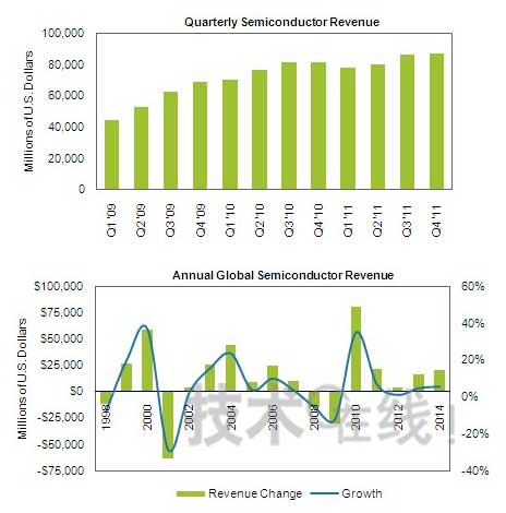 iSuppli從正面否定了對于此次快速增長所擔(dān)心的“泡沫”和“二次探底”。關(guān)于泡沫問題,有觀點認(rèn)為,此前曾創(chuàng)下歷史最高增長率的2000年出現(xiàn)了需求泡沫,所以此次的增長會不會也是泡沫。但是,iSuppli指出,2000年的增長是繼1999年經(jīng)濟繁榮之后的產(chǎn)物,而此次增長的背景卻是經(jīng)濟形勢從2009年以前的經(jīng)濟低迷期開始的復(fù)蘇,因此這兩種情況“在循環(huán)本質(zhì)上完全不同”。關(guān)于二次探底,iSuppli高級副總裁戴利·福特(Dale Ford)表示,“我不同意二次探底將要到來的觀點”。他認(rèn)為,從2010年下半年開始,2010年半導(dǎo)體市場將恢復(fù)到通常模式。也就是說,2010年第二季度將環(huán)比增加8.2%,達到峰值,第三季度將環(huán)比增加6.7%、第四季度將環(huán)比增加0.4%,出現(xiàn)減速,進入2011年后,由于通常的季節(jié)因素,將轉(zhuǎn)為環(huán)比負(fù)增長。iSuppli預(yù)測,回到這種標(biāo)準(zhǔn)增長模式后,2011年的半導(dǎo)體市場將增長7%。