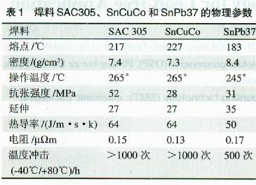 通過從SnCuCo合金上面所獲取的數(shù)據(jù)認識進行推斷,當焊料的操作溫度維持在265℃的時候,可以預計當焊料中銅含量大約在0.85%的時候可以獲得令人滿意的效果,當高于1.0%的時候性能會變壞。