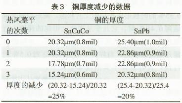 在通過第一次的時候,無鉛化合金比起SnPb37焊料除去的銅要少。同樣,當通過第二次的時候,僅有12.5%和10%被移除,在經(jīng)歷第三次的時候僅有25%和20%的銅被移除(表3)。