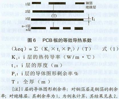 評價PCB的散熱能力,就需要對由導熱系數(shù)不同的各種材料構(gòu)成的復合材料一一PCB用絕緣基板的等效導熱系數(shù)(九eq)進行計算。PCB板的等效導熱系數(shù)見圖6所示。