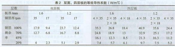 從表2我們可以看出板厚度越小,銅箔越厚,銅箔剩余率越高,層數(shù)越多,其等效導熱系數(shù)越大,PCB板的導(散)熱效果越好。