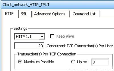 在進行吞吐量基線測試中,一般以HTTP作為應用層協(xié)議,為了得到最理想的測試效果,通過會選擇HTTP1.1,每個TCP連接處理盡量多的HTTP事務(transacTIon),并且將HTTP載荷設置較大。圖2是使用IxLoad設置的例子。
