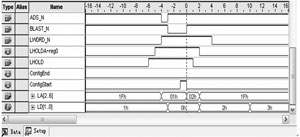 圖4中ADS_N、BLAST_N、LWORD_N、LHOLD、LHOLDA是LocalBus的接口信號,ConfigEnd和ConfigStart是分別代表配置結束和配置開始的標志寄存器,LA是接口的地址信號,用于模塊中控制寄存器的尋址,LD是接口的數(shù)據(jù)信號,用于指令數(shù)據(jù)的發(fā)送和數(shù)據(jù)的回收。