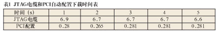 從表1的數(shù)據(jù)對比中可以看到,基于PCI總線的自動下載配置方式要比基于JTAG電纜的下載配置方式提高超過20倍的速度,如果使用基于JTAG電纜對某大容量的FPGA下載需要近20分鐘的話,使用PCI下載方式則只需不到1分鐘的下載時間,具有明顯的速度優(yōu)勢,大大節(jié)省了FPGA測試中的數(shù)據(jù)配置時間。