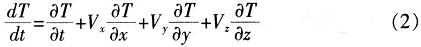 三維直角坐標系中的瞬態(tài)溫度場場變量T(x,y,z,t)滿足: