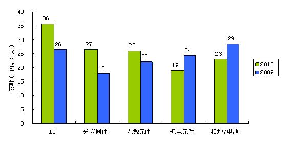 本次調查的結果印證了2010年電子行業(yè)所面臨的“缺貨”困境——2010年電子系統(tǒng)制造商與設計公司面臨的最普遍的采購風險是無法供貨,43.6%的公司面臨著供應商無法供貨的困擾。與2009年的調查做對比,2010年IC、分立器件、無源元件、機電元件、模塊/電池五大類物料價格有不同幅度增長,其中IC與分立器件漲幅最大,機電元件、模塊/電池漲幅最??;交貨期方面,IC、分立器件、無源元件交貨期都有所延長,而機電元件、模塊/電池交貨期分別縮短了5天和6天;貨款結算期方面,IC、分立器件貨款結算期均有所延長,無源元件、機電元件、模塊/電池的貨款結算期都縮短了。