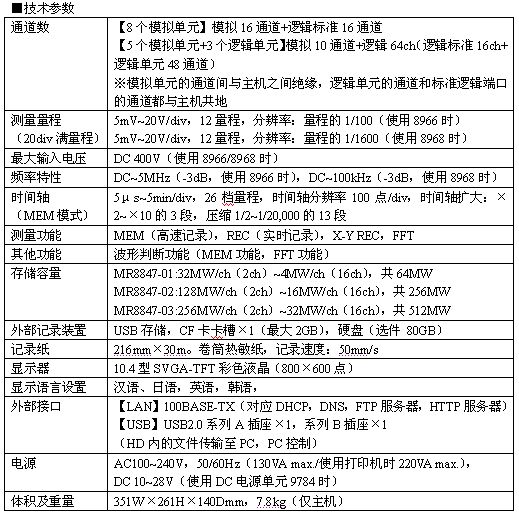該系列分為:MR8847-01(64MW內存);MR8847-02(256MW內存);MR8847-03(512MW內存)除了原本20MS/s采樣率的靈活運用之外,更新增了波形判斷功能等一系列應對市場發(fā)展需要的新功能。