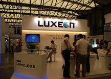 Luxeon Philips成立于 1891 年的Philips 是世界上最大的電子公司之一,主要生產(chǎn)照明、家庭電器、醫(yī)療系統(tǒng)。目前,Philips已發(fā)展成為一家大型跨國公司,在 28 個國家設(shè)有生產(chǎn)基地,在 150個國家設(shè)有銷售機構(gòu),擁有 8 萬項專利,實力超群。Philips為所有領(lǐng)域提供先進的高效節(jié)能解決方案,包括:道路、辦公室、工業(yè)、娛樂和家居照明等,其主要產(chǎn)品 :HID 氙汽車燈(FUCLUB)、Cosmo Polis( 道路照明 )、Living Colors( 氛圍照明 )。本屆展會上,Philips Lumileds 展出了一系列最新產(chǎn)品,吸引了眾多觀眾。