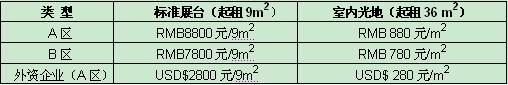 1)展位價格(申請截止日- 2012年4月10日 )注:雙面開口展位加收10%,18平米免收開口費!)