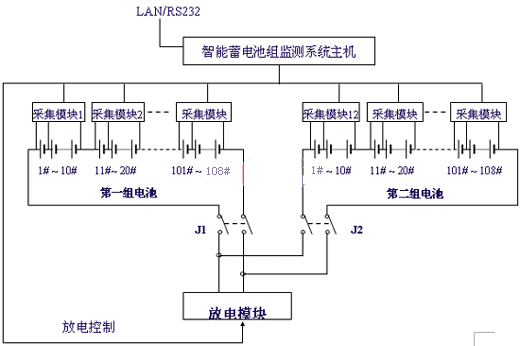 與電池巡檢儀不同,在這個系統(tǒng)增加了一個放電模塊,放電模塊能承受較大的沖擊電流,它接收監(jiān)控主機(jī)的放電命令,接通放電回路,電池通過負(fù)載放電,同時(shí)采集模塊將采集每節(jié)電池電壓的變化,在主機(jī)中得到了每節(jié)電池內(nèi)阻特性曲線。放電模塊也可作為長時(shí)間放電負(fù)載,實(shí)現(xiàn)對電池容量的核對性測試及整組電池的活化處理。這個系統(tǒng)實(shí)現(xiàn)對蓄電池全方面的監(jiān)測和維護(hù)管理。