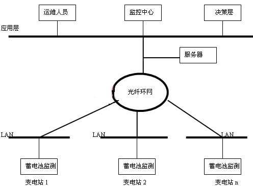 蓄電池在線監(jiān)測還可以利用通訊手段進(jìn)行網(wǎng)絡(luò)化管理(如圖4),將幾個站或一地區(qū)的蓄電池監(jiān)測通過光纖進(jìn)行組網(wǎng),建立一個實(shí)時(shí)遠(yuǎn)程智能化蓄電池監(jiān)測網(wǎng)絡(luò)化管理系統(tǒng),以實(shí)現(xiàn)信息集中和遠(yuǎn)程控制,使運(yùn)行檢修人員、相關(guān)人員和管理決策層能夠通過局域網(wǎng)內(nèi)的任何一個終端用IE瀏覽的方式即可實(shí)時(shí)掌握各變電站蓄電池的運(yùn)行情況及其性能變化趨勢,使蓄電池得到及時(shí)的維護(hù),同時(shí)也為“設(shè)備狀態(tài)檢修”提供可靠依據(jù),將“定期維護(hù)檢修”轉(zhuǎn)變?yōu)?ldquo;狀態(tài)檢修”,從而實(shí)現(xiàn)對蓄電池的科學(xué)化管理,保證系統(tǒng)的可靠、安全運(yùn)行。