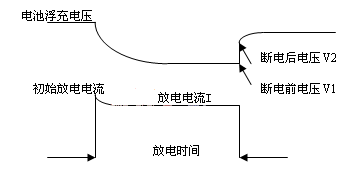 蓄電池在線內(nèi)阻監(jiān)測,通過電池向放電模塊瞬時(shí)放電,測量電池?cái)嚯娝查g的電壓差,計(jì)算電池內(nèi)阻(R內(nèi)阻=△V/I),內(nèi)阻測試原理如圖3。由于在線監(jiān)測中出現(xiàn)的端電壓監(jiān)測誤差、放電過程電流波動、斷電前后電壓補(bǔ)捉測量技術(shù),以及在線連接線電量衰檢等問題,內(nèi)阻在線監(jiān)測精度不高。目前,在國內(nèi)美國ABLER便攜式內(nèi)阻測試儀應(yīng)用較多,它的在線式內(nèi)阻測試系統(tǒng)測試精度與便攜式相比稍差,但與目前使用的其他產(chǎn)品相比還是要好些。
