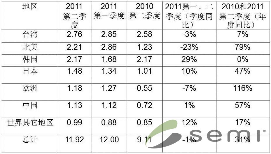 - 2011年第二季度全球半導(dǎo)體設(shè)備訂單達(dá)107.6億美元