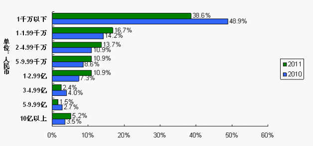 此外,IC和電子元器件的平均采購額由2010調(diào)查的1.02億增加至2011調(diào)查的1.15億,增加12.7%。采購總額在1億人民幣以上的系統(tǒng)廠商由2010調(diào)查的17.5%增加至2011調(diào)查的20.1%,大中型企業(yè)表現(xiàn)出成長(zhǎng)。采購總額在1千萬以下的系統(tǒng)廠商由2010調(diào)查的48.9%降至2011調(diào)查的38.6%,小微型企業(yè)由于經(jīng)營困難或缺貨沖擊而倒下。