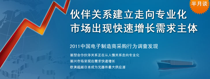缺貨危機(jī)過后,中國電子系統(tǒng)制造商和電子元器件供應(yīng)商對(duì)風(fēng)險(xiǎn)共擔(dān)、利益共享的伙伴關(guān)系有了新的理解。 2011中國電子制造商采購行為調(diào)查發(fā)現(xiàn),在供應(yīng)商認(rèn)證與引入過程中建立了系統(tǒng)流程并很好實(shí)施的比例顯著增加;讓供應(yīng)商參與早期產(chǎn)品設(shè)計(jì)的比例顯著增加;培養(yǎng)供應(yīng)商的比例顯著增加。合作伙伴關(guān)系建立正在從人情關(guān)系走向更加專業(yè)化和系統(tǒng)化。此外,新興市場(chǎng)在新型伙伴關(guān)系基礎(chǔ)上呈現(xiàn)出需求快速增長(zhǎng)。