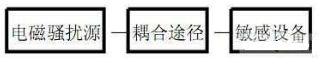 電磁干擾( EM I)是指電磁騷擾引起的設(shè)備、傳輸通道或系統(tǒng)性能的下降。形成電磁干擾必須具備三個(gè)要素, 即: 電磁騷擾源、耦合途徑和敏感設(shè)備。三者關(guān)系如圖1所示。