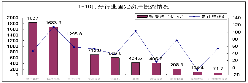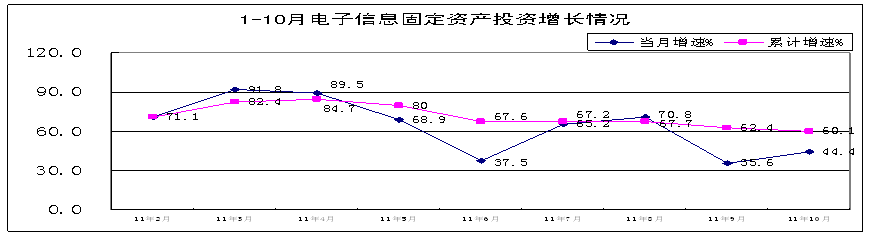 2011年1-10月我國電子信息產(chǎn)業(yè)固定資產(chǎn)投資情況