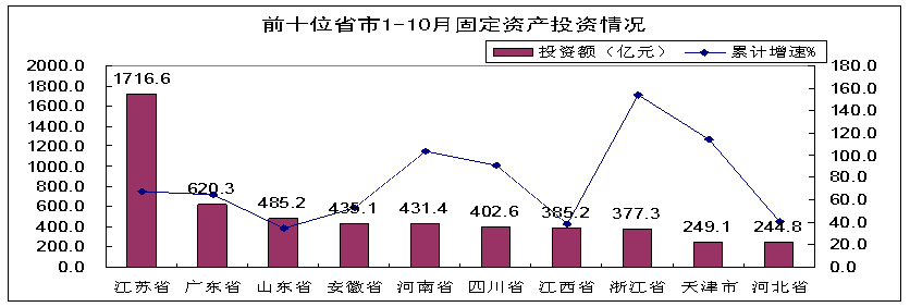 • 1-10月,東部10省市完成投資4328億元,同比增長70%
