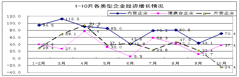 五、內(nèi)資企業(yè)投資增勢突出,外商投資增速放緩