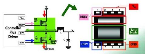 1.帶驅(qū)動(dòng)器和MOSFET的分立式解決方案現(xiàn)在仍在普遍使用。為滿足所有設(shè)計(jì)要求,現(xiàn)在飛兆半導(dǎo)體提供的采用小尺寸熱性能增強(qiáng)型MLP(QFN) 封裝的產(chǎn)品,可獲得高系統(tǒng)性能。MOSFET實(shí)現(xiàn)了首先采用MLP封裝(見圖3所示)。其Power56和Power33產(chǎn)品系列采用最新的PowerTrench技術(shù),能夠同時(shí)提供超低RDSon 和低Qg,從而適用于高開關(guān)頻率應(yīng)用。鍵合技術(shù)可減小封裝的電感 ,提高封裝有限的ID ,適用于大電流應(yīng)用。其低端FET產(chǎn)品組合采用SyncFET集成了肖特基二極管 ,在實(shí)現(xiàn)高開關(guān)性能的同時(shí)降低了熱耗。