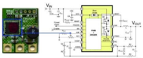 2.上述帶驅(qū)動(dòng)器和MOSFET的分立式解決方案也備有8x8mm或6x6mm MLP封裝的MCM(多芯片 模塊)。這些DrMOS(DriverMOS)產(chǎn)品系列包括 8x8mm產(chǎn)品FDMD87xx和6x6mm產(chǎn)品FDMF67xx,可滿足不同的設(shè)計(jì)要求。而評(píng)估板則可協(xié)助設(shè)計(jì)人員熟悉應(yīng)用,并測試性能以便與分立式解決方案相比較(圖5)。