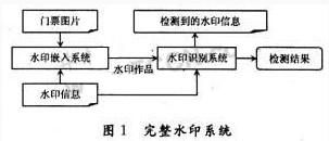 門票是觀看奧運會、演唱會、參加高級會議的入場券。隨著高質(zhì)量圖像輸入輸出設(shè)備的發(fā)展,特別是精度超過1200dpi的彩色噴墨、激光打印機和高精度彩色復(fù)印機的出現(xiàn),門票的偽造變得更加容易。所以人們迫切需要一種有效的門票防偽及檢測技術(shù)。傳統(tǒng)的防偽技術(shù),基本上都采用材料防偽,屬于共性化防偽。如果被人仿冒,后果不堪設(shè)想,也存在造價高等缺點。而數(shù)字水印技術(shù)屬于個性化防偽技術(shù),它是與個性特征相結(jié)合,并且不改變成熟的印刷工藝,不改變印刷材料與設(shè)備,不增加印刷成本,是目前較好的防偽技術(shù)。