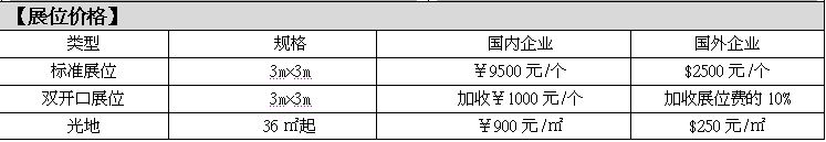標(biāo)準(zhǔn)展位配備三面圍板(高2.5m)、公司楣板、咨詢臺1張、椅子兩把、光管2只、電源插座1個、廢紙簍1個;光地不提供任何配置;展位搭建、用電、展具需另行租賃。