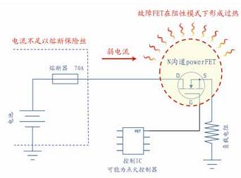圖1. 阻性模式下的PowerFET故障可能形成不安全的溫度情況