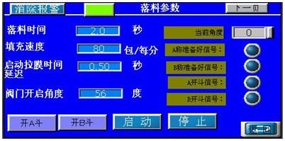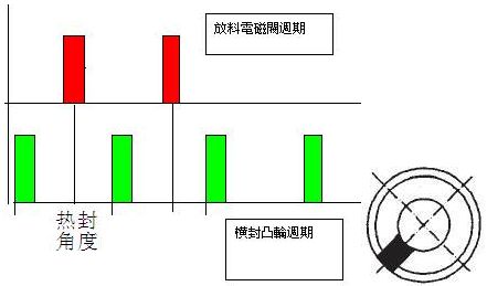 根據(jù)熱封的電子凸輪周期0~360設定促發(fā)開啟放料閥即可。比如,在開機前假設設定50度,放料。實際出現(xiàn)夾料。調整促發(fā)角度到150,直到合適為止。因為落料時間足夠短,一個周期按120袋來算也有500ms。