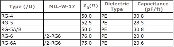 一般在測量高頻電路的時候,我們通常采用RF同軸線,比如常見的RG-58C,從直覺來看,50ohm的RF同軸線不會對測量引起太大的影響,可是如果從實際來思考,傳輸線可以看做是一系列LCRG組成的網(wǎng)絡,由于CL的存在,這個網(wǎng)絡必然存在一個工作頻率范圍,由于RG的存在,這個網(wǎng)絡必然存在損耗,所以傳輸線會對測試系統(tǒng)產(chǎn)生濾波器效應,也就是說傳輸線也有一個工作頻率范圍的問題,如果我們用網(wǎng)絡分析儀去測試一根RF同軸線比如RG-58C,在很寬的頻率范圍來掃描其S21,我們會發(fā)現(xiàn)這個同軸線是一個低通濾波器,從RF線材的非理想性來看,這個測量結(jié)果應該是意料之中的??梢栽O想,如果我們單純讓這根同軸線工作在遠離其低通濾波器corner-frequency很遠的地方,那么從RF匹配的角度來看,這個同軸線就不是一個50ohm或者75ohm匹配的同軸線,如果使用這根線,必然引起很大的反射損耗,此時就必須重新選擇其他RF線材。下面的表格就是一個RF同軸線的參數(shù)表格,可以看到每個feet長度時,其等效的電容大約是20~30pF,對于高頻而言,這個是比較大的電容,這就是為什么我們在進行RF測量時,必須選擇盡可能短的同軸線的原因。