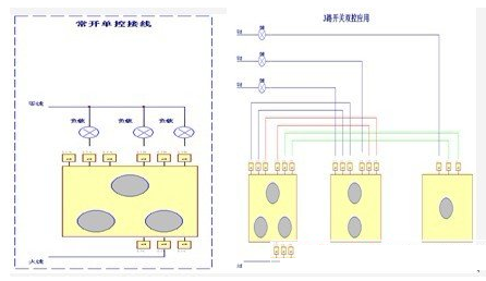 - 結合具體的應用系統(tǒng)給出單路、雙路和三路開關的安裝方法