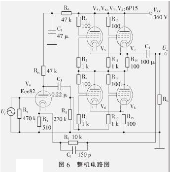 輸出級采用SRPP電路,電子管既可選擇內(nèi)阻合適的三極管,如6N6,E182CC,也可選擇用于功放的小功率五極管,如6P15,6P14,EL42,EL91,EL84,EL86?!?br />