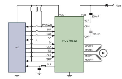 圖3:NCV70522單芯片微步進電機驅(qū)動器