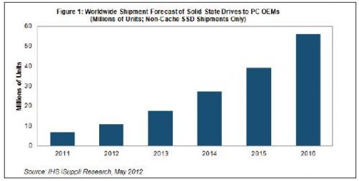 據(jù)IHS iSuppli公司的存儲(chǔ)市場簡報(bào),隨著固態(tài)硬盤(SSD)的成本下降,以及超級本(Ultrabook)等產(chǎn)品的需求給其帶來活力,PC OEM廠商可能會(huì)增加使用SSD,從而進(jìn)一步擴(kuò)大其出貨量。