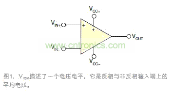 輸入共模電壓VICM是一位工程師在考慮運(yùn)放輸入時(shí)的首要規(guī)格之一,但它可能帶來(lái)一些混淆。VICM描述了一個(gè)電壓電平,它是反相和非反相輸入端的平均電壓(圖1)。通常用下式表示:
