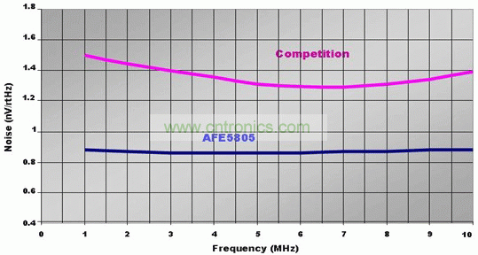 超聲波成像作為一種醫(yī)療診斷工具被廣泛采用已有很多年。其之所以被廣泛采用是因為它具有無創(chuàng)傷、低成本、便攜性以及實時性等特點。帶有便攜式超聲波系統的新型前沿產品已經成功地 運用于許多應用中,例如:及時創(chuàng)傷診斷和急診及治療。最近的一些創(chuàng)新將使新型超聲波系統實現前所未有的低功耗和小尺寸。噪聲決定了超聲波圖像的質量和系統的靈敏度?,F在就有一款可以 實現更低的噪聲并且在整個工作頻率范圍內噪聲均保持不變的解決方案。