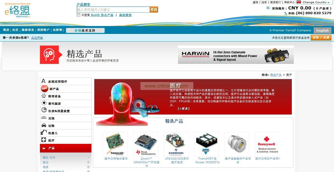 高性能、高精度和高可靠性部件對醫(yī)療行業(yè)至關(guān)重要。e絡(luò)盟的醫(yī)療子站率先采用創(chuàng)新模擬信號鏈、嵌入式處理和傳感技術(shù)以及世界領(lǐng)先供應(yīng)商的產(chǎn)品,如Altera、Fischer、松下、德州儀器和XP電源。醫(yī)療成像在亞太區(qū)采用廣泛,尤其是顯示與嵌入式多媒體產(chǎn)品,如DSP和FPGA。低功耗設(shè)備和移動醫(yī)療設(shè)備的無線通信也日益普及。