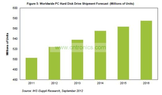 上述預(yù)測只涉及銷往所謂PC計算領(lǐng)域的硬盤,包括用于臺式機(jī)和筆記本的客戶硬盤,以及用于服務(wù)器和存儲系統(tǒng)的企業(yè)硬盤。預(yù)測中不包括用于汽車、外置硬盤或DVR設(shè)備等消費應(yīng)用的硬盤出貨量。不同于在PC領(lǐng)域的亮麗表現(xiàn),今年與消費相關(guān)的硬盤出貨量將低于2011年水平。