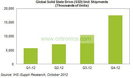 據(jù)IHS iSuppli提供的數(shù)據(jù),SSD上半年全球出貨量共計(jì)1290萬塊,而第三季度單季就達(dá)到了1050萬塊,并在第四季度提升到1750萬塊。也就是說,下半年的出貨量將達(dá)到上半年的兩倍以上。