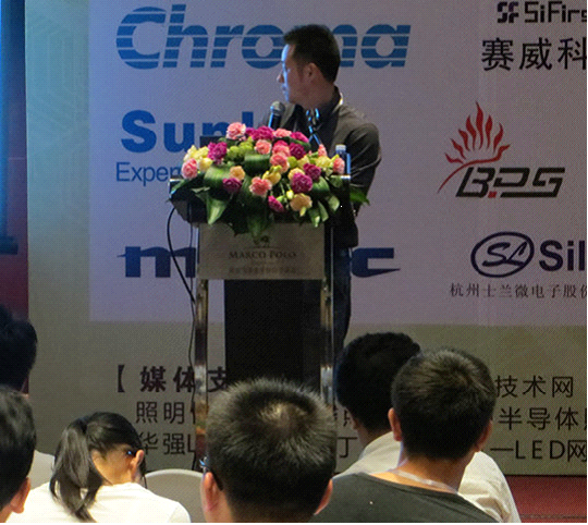 士蘭微產(chǎn)品應(yīng)用工程經(jīng)理蔡擁軍發(fā)表了《照明驅(qū)動(dòng)器新產(chǎn)品及方案》的演講,主要從DC-DC LED驅(qū)動(dòng)器和AC-DC LED驅(qū)動(dòng)控制器及未來產(chǎn)品的趨勢(shì)作報(bào)告。為國(guó)內(nèi)規(guī)模最大的集成電路芯片設(shè)計(jì)與制造一體(IDM)的企業(yè)之一,士蘭微在今年新推出了幾款LED驅(qū)動(dòng)控制器產(chǎn)品。以非隔離AC-DC控制器為主,例如SD6900。隔離型AC-DC產(chǎn)品推出了SD6955。