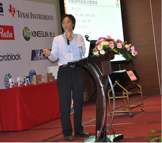 晶門科技有限公司業(yè)務(wù)營(yíng)運(yùn)總監(jiān)區(qū)偉江通過《步入智能環(huán)保新紀(jì)元》的主題演講,講述晶門科技的智能模塊解決方案,通過它的智能接口,采用PWM或模擬調(diào)光,可接駁不同的控制系統(tǒng)。其獨(dú)特的模塊化設(shè)計(jì),可以結(jié)合DALI,ZigBee或藍(lán)牙等遙控系統(tǒng)成為小巧的系統(tǒng)設(shè)計(jì)。